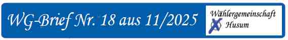 Die Wählergemeinschaft Husum berichtet in den WG-Briefen über aktuelle Themen aus der Politik, über Veranstaltungen und aus dem Gemeindeleben. Hier können die bisher erschienenen Briefe herunter geladen werden.